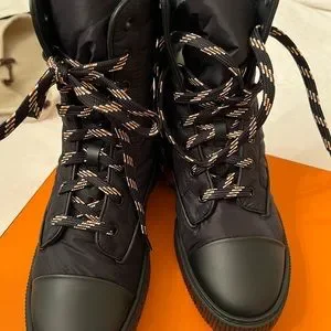Ankle boot in calfskin and light parachute fabric with rubber sole