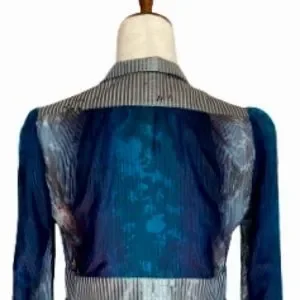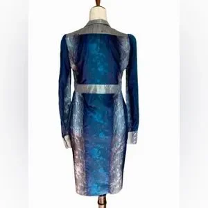 SOLD Matthew Williamson Silk & Wool Blend Blue/Silver Button Down Shirt Dress,