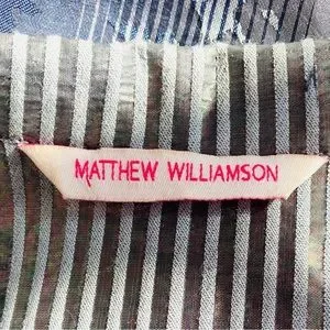 Matthew Williamson Designer Silk and Wool Blend Blue/Gray Silver Button Down Shirt Dress, Sz 10