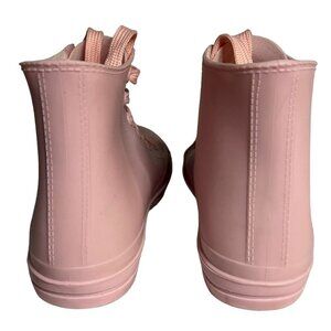 Pink High-Top Rubber Sneakers With Glossy Toe Cap & Lace-Up Closure