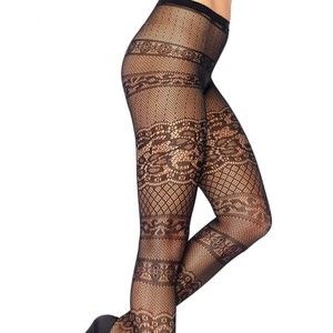 Black Striped Antique Lace Pantyhose OS Lingerie