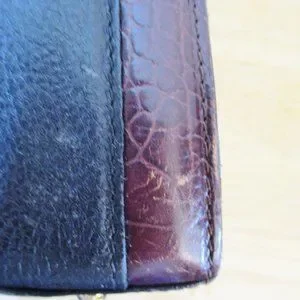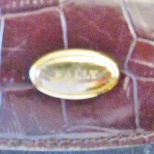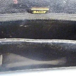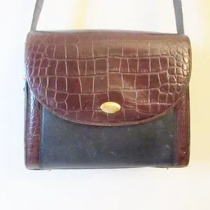 Vintage Bally black leather and brown croc embossed leather crossbody/shoulder handbag. Adjustable strap. Outside pocket on back. Inside has 2 compartments. Magnetic snap closure. This bag is in very good pre-owned condition. The strap does have a little wear where it is adjustable (see picture #13). There are also some slight scuff marks on corners (see picture #15). Inside has some white spots (see picture #14) . There is a registration number tag on the inside of the zipper pocket.