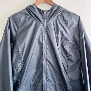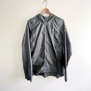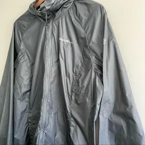 Lightweight packable ventilated hooded windbreaker in storm blue (dark grey blue)