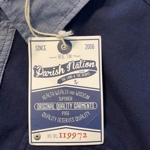 Parish Nation The Land & The People Streetwear Navy Button Down XL NWT