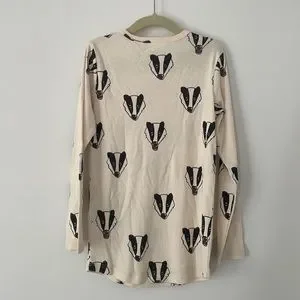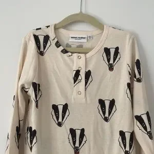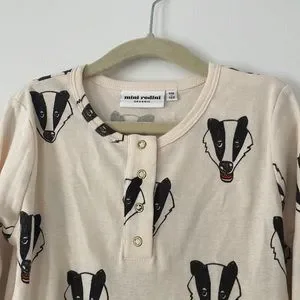 Mini Rodini Designer badger print kids long sleeve button top organic cotton 5-7