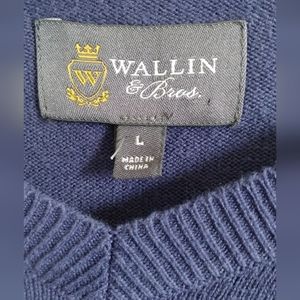Cashmere and Cotton Blend Men's Blue Sweater, V-neck, size large, armpit to armpit 23", good condition just has a tiny white mark at the bottom as seen in last photo, and slight wear