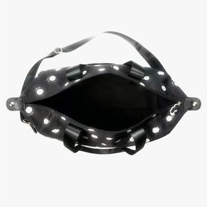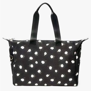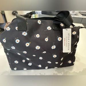 Black duffel bag with daisy print. Removable strap. Inside zipper pouch. Perfect overnight bag. Brand new!!