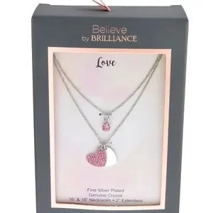 This beautiful Believe by Brilliance Genuine Crystal Double Layer Solitaire pendant and Double Heart Charm pendant set is a perfect addition to your collection and makes an ideal gift for loved ones.