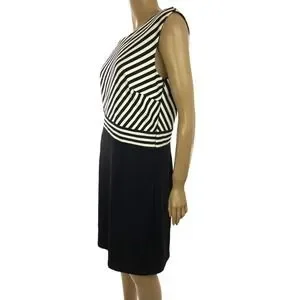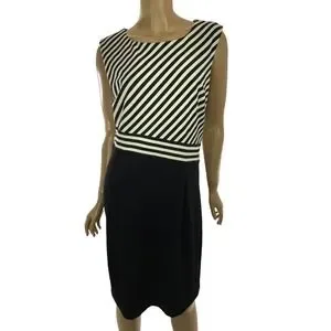 Spense Size 10 Sheath Dress Black & White Stripe Sleeveless Side Zip
