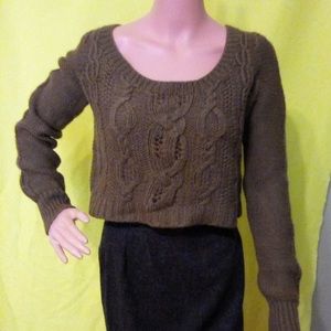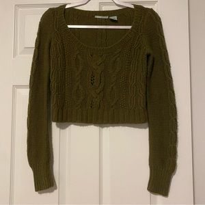 Guinevere green cropped alpaca / Marino wool sweater size XS Anthropology