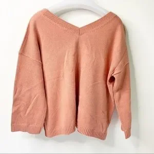 Madewell Lightweight Double V-Neck Pullover Sweater in Rosewood Pink, NWT!, A double V front-and-back design, plus a lightweight knit fabric and 3/4 length sleeves, give breezy style to this pullover. Fits true to size. - V-neck - 3/4 length sleeves - V-back - Ribbed trim - Side slits - Knit construction, 62% cotton, 20% viscose, 18% nylon