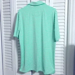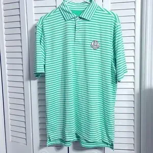FG Tech Everglades Cup/Everglades Club mens green pinstripe golf polo medium. Cool Polyester. Smoke free/Perfume free home. Excellent condition.