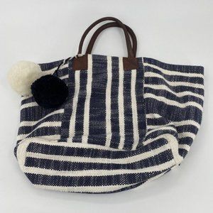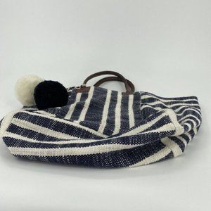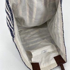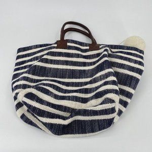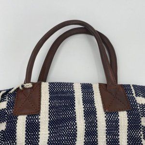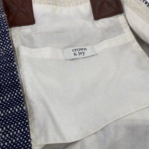 Crown & Ivy Women's Tote Bag Blue Ivory 100% Cotton Shopping Gym Beach
