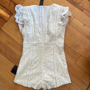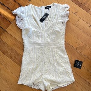White lace short sleeve romper from Lulu’s. New with tags
