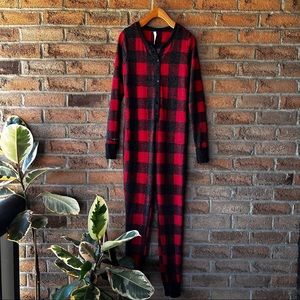 AREOPOSTALE | Multiple Red & black checked long sleeve onesie one piece pyjama
