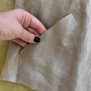 Vintage Chloé ruffle jacket in beige linen, size 40 (approximately Medium, please see measurements). Very nice condition with no holes, stains, or tearing. Small discoloration spot under one arm (see photo) that is not visible when worn. Purchased as vintage and enjoyed as vintage, so please consider this when browsing. Ruffle detail with functional front pockets and closureless front opening. Such a great minimalist piece that manages to pack a punch of personality. Loved, but making room in my closet. Color most accurately depicted in pocket photo.