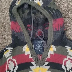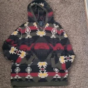 Size large, cozy sweater. Aztec patterns. great for fall/winter.100% cotton