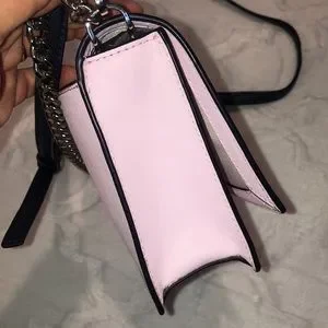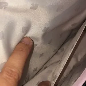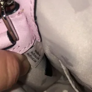There are some pink marks at the top rear of the bag and some very minor color transfer on the back. Please see pics.