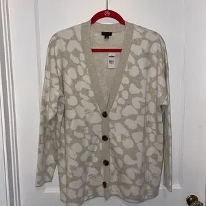 Ann Taylor Factory V-Neck Cream Leopard cotton blend cardigan. EUC