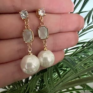 Small Aqua/Pearl Dangle Earrings