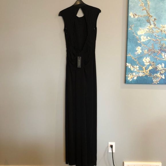Rachel Zoe Amara Open Back High Slit Gown Dress Black 2