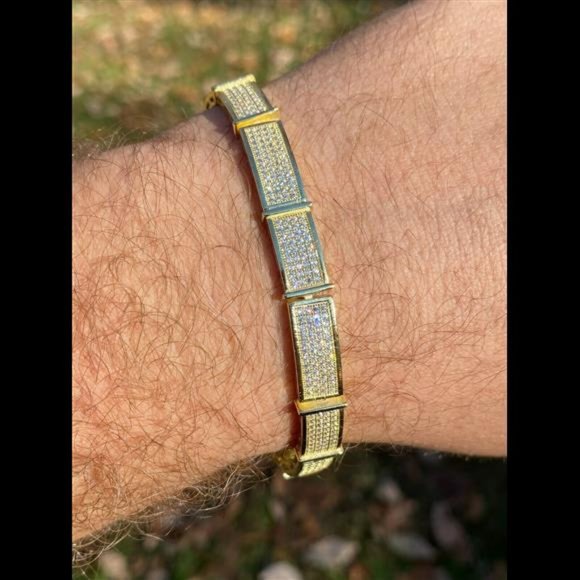 COPY - 14k Gold Over Solid 925 Sterling Silver Mens Iced Flooded Out Bracelet D…