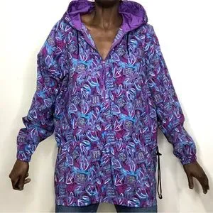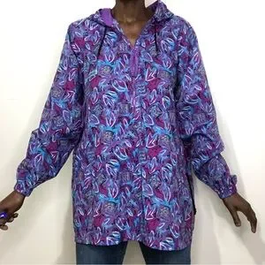 Vintage 1990s Graphic Print Nylon Rain Windbreaker Jacket. Pullover style