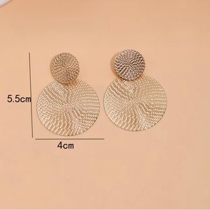 Gold Tone Stacked Round Dangle Textured Earnings: Bohemia Style earrings.