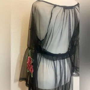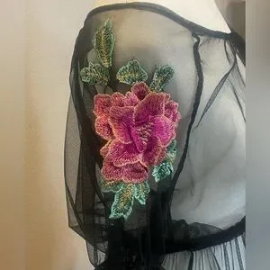 NWOT Potter’s Pot Black Sheer Mesh Dress with Flower Appliqués Size Small