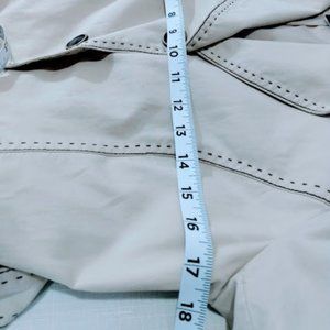 Eddie Bauer coat with belt. Cream color. Fabric shell 70% cotton 30% nylon. Lining 100% nylon