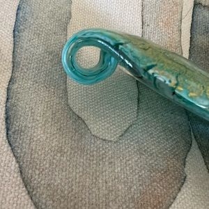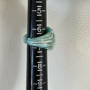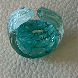 Authentic pieces purchased in Murano, Italy. Millifiore design with brushes of gold sit against shades of aqua making for a beautiful presentation! In perfect condition. Please review all photos which are part of the description.