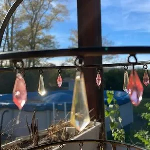 Holds 2 10” pies or 2 of your plates for appetizers. Pretty peach and pale yellow sparkly details adorn each tier.