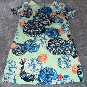 Pristine Jcrew beautiful mini dress. Size 8. Has a tshirt style- but in a luxurious way! Beautiful mint background with stunning bursts of colorful flowers. Sad to sell- it doesn’t fit anymore! TTS.