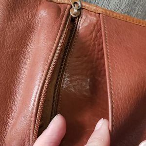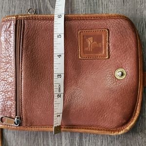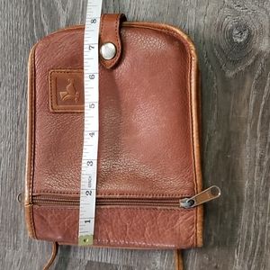 Easily holds passport, phone, all important paperwork. Zipper front pocket with snap close to open to yet another zippered pocket. Not easily entered.