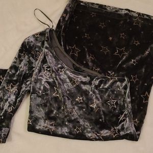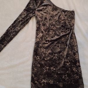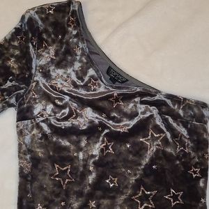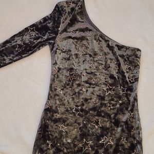 Topshop Size 2 Velvet Holiday Glitter Star Green Off Shoulder Dress