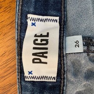 Designer Size 26 Paige ankle jeans. Little wear and tear on back right pocket and front when the jeans are not on; however, when the jeans are on then cannot tell the difference. Purchased and owned by only one owner (muah ;))