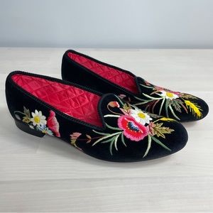 BERK Burlington Arcade London Black Velvet Floral Embroidered Loafer Shoe.