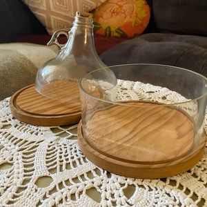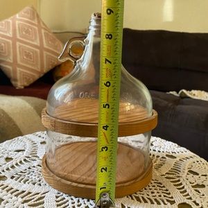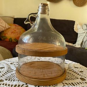 Vintage one gallon glass and wood jug. Separates into two parts. Can be used like a cheese dome. Fun way to serve cheese and crackers!