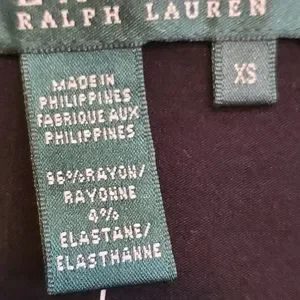 Lauren Ralph Lauren Sum 5 Classic Top, Size XS. NWT. 96% rayon 4% elastane. Machine washable. Measurements taken while lying flat: Pit to pit-17", back of neckline to hem-25". (L2)