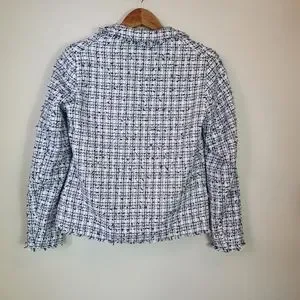 H&M Tweed blazer coat Sze 8 blue white textured Office corporate casual woman's