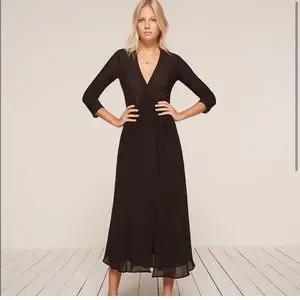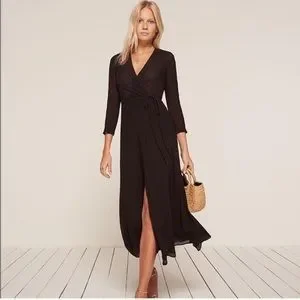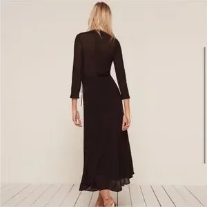 NEW • Reformation • Tessa Long Sleeve MIDI Wrap Dress Black XS Womens