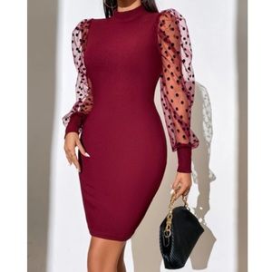 Luxe black mesh sleeve party formal evening wedding bodycon dress