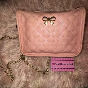 PinkBombchelle Pink Quilted Pattern Makeup Bag/Purse — Bow