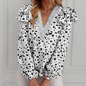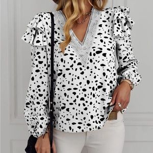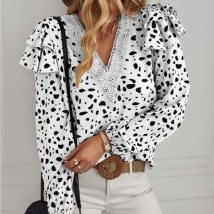 Luxe lace insert lantern sleeve blouse