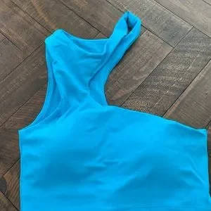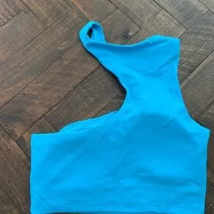 Gently used bright blue one shoulder sports bra for yoga or working out medium
