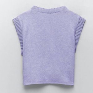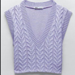 ZARA WOMAN NWT KNITTED WAISTCOAT VEST CABLE-KNIT 5039/308 Lilac Purple M L