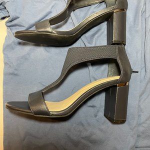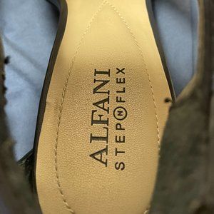 Alfani Womens Step N Flex Foxxii Sandal Block Heel Shoes Blue Leather Size 9.5 DEEP NAVY BLUE NWOT shows a scuff on the heal from being tried on