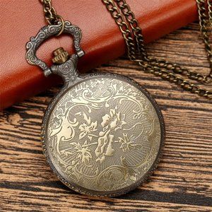 Brand new pocket watch. Metal construction with 3D sculpted relief. Quartz movement, battery operated. Battery is included and pre-installed.