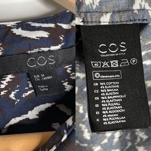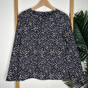 SOLD COS Blue Maroon Print Top Blouse Size 34 6 Cotton Frill Ruffle Long Sleeve