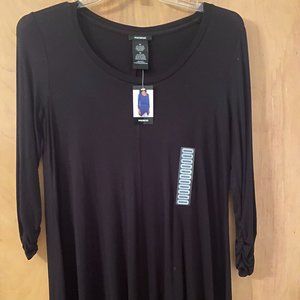 Premise Women's A-line U Neck Shark bite hem black pullover shirt - Medium